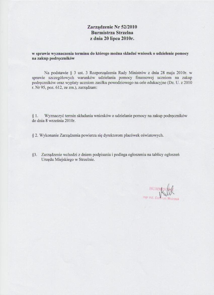 1. Dofinansowanie do zakupu podręczników udzielane jest uczniom rozpoczynającym w roku szkolnym 2010/2011 naukę: