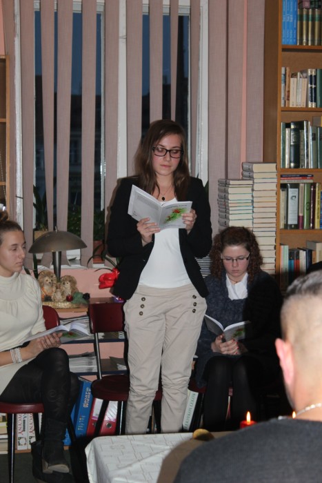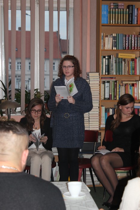 Wiersze ze wspomnianego tomiku recytowały uczennice strzeleńskiego liceum: Angelika Krygier, Paulina Krzesińska, Klaudia Pawlak, Klaudia Kasprzyk, Weronika Szymańska, Agata Borys i Michalina Skowrońska przygotowane na ten wieczór przez panią Dorotę Czarnecką, nauczycielkę języka polskiego. Oprawę muzyczną dla prezentowanych wierszy wybrał pan Piotr Barczak.